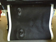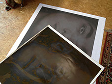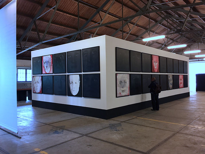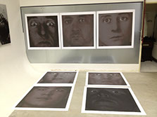 Bij de bewerking van meerdere oorspronkelijke foto’s van slachtoffers uit Auschwitz kiest Theo Derksen voor het accentueren van de ogen, neus en mond in ieder nieuw gemaakt portret op basis van het bestaande materiaal.