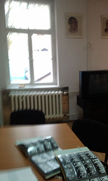 Uitzicht uit het raam van het fotoarchief geeft zicht op de plaats waar het orkest speelde