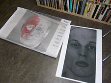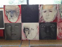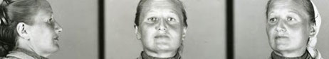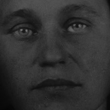 Bij de bewerking van meerdere oorspronkelijke foto’s van slachtoffers uit Auschwitz kiest Theo Derksen voor het accentueren van de ogen, neus en mond in ieder nieuw gemaakt portret op basis van het bestaande materiaal.